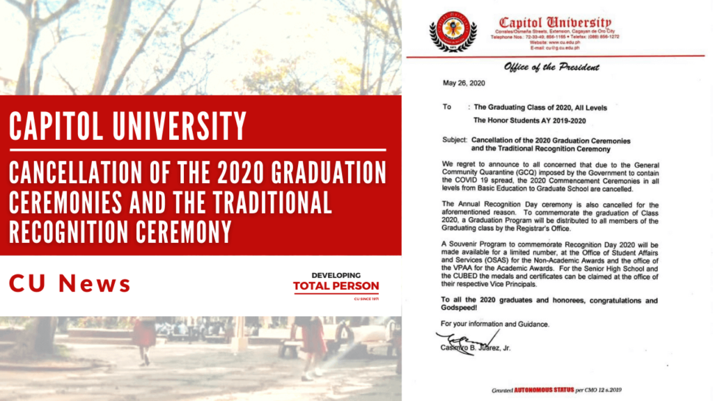 Cancellation of the 2020 Graduation Ceremonies and the Traditional Recognition Ceremony