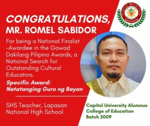 Dr. Juanito Demetrio, professor at the Capitol University Graduate School, was the third prize regional....Read more